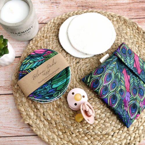 • Cuscinetti assorbilatte lavabili in bambù – Pastel Baby – Pavone