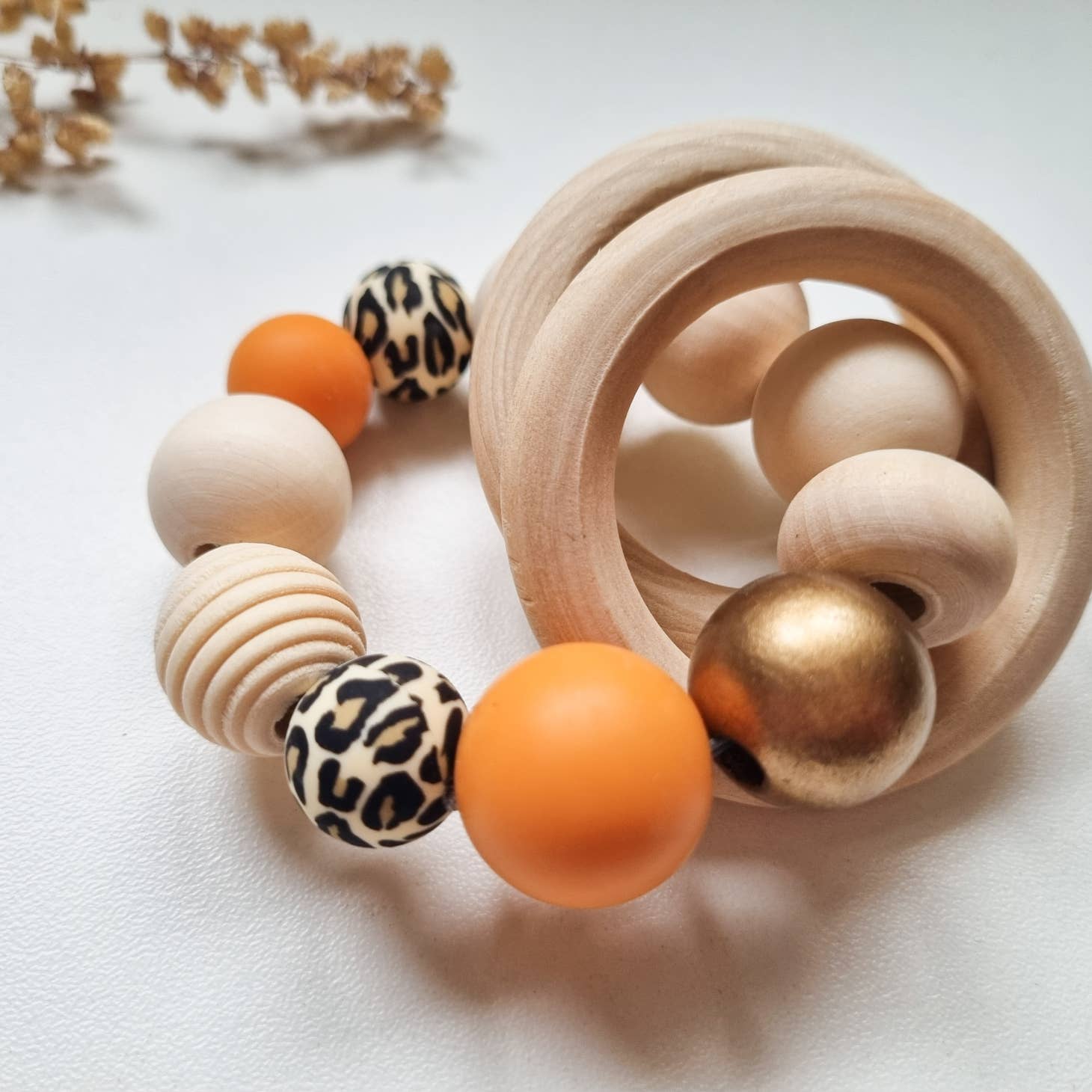 Con questo anello da dentizione in legno combinato con silicone il tuo bambino potrà lenire il dolore dell’arrivo dei dentini in modo giocoso. Bello da regalare o da prendere per il tuo bambino!
