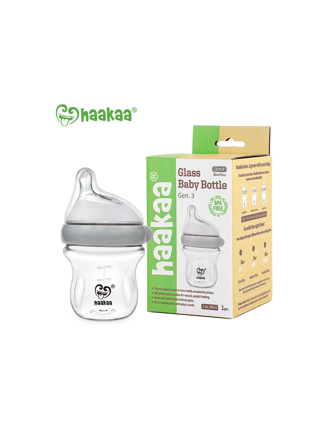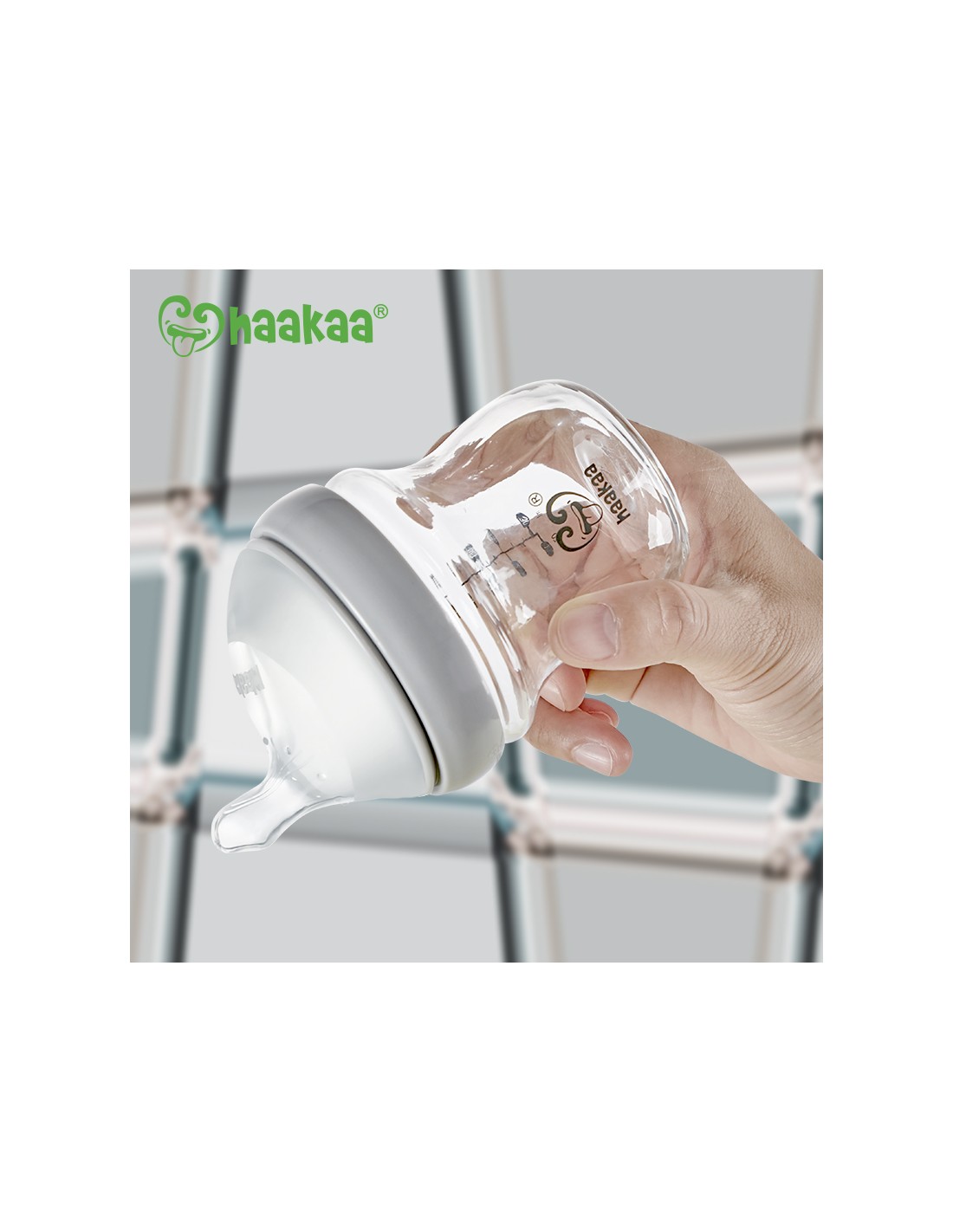 La tettarella a forma di pollice, imita la forma del capezzolo della madre durante l’allattamento. I biberon di vetro di Haakaa sono realizzate in vetro borosilicato resistente alla temperatura, il che significa che possono essere riscaldate e congelate in modo sicuro e sono perfette per conservare il latte materno estratto.