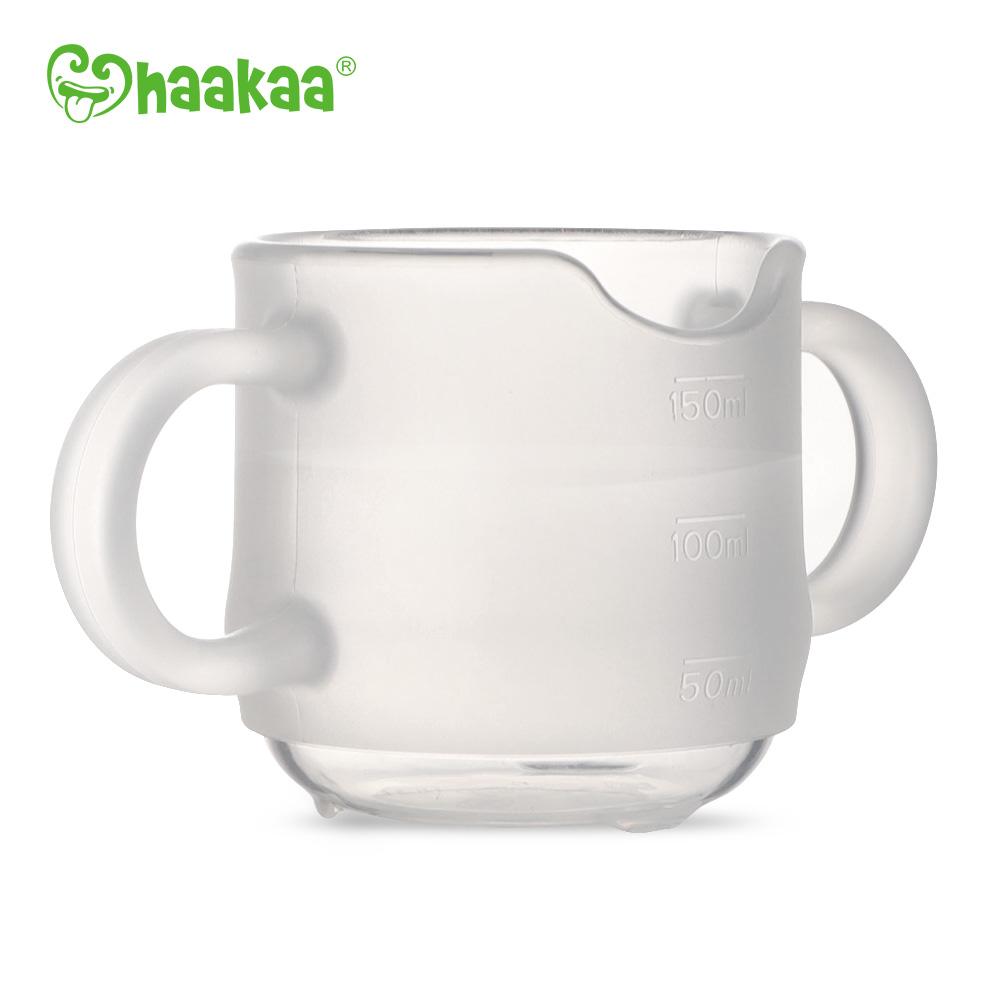 Aiuta il tuo bambino a passare dal biberon al bicchiere con il bicchiere per bebè in silicone di Haakaa! È la scelta perfetta per i bambini che imparano a bere in modo indipendente.