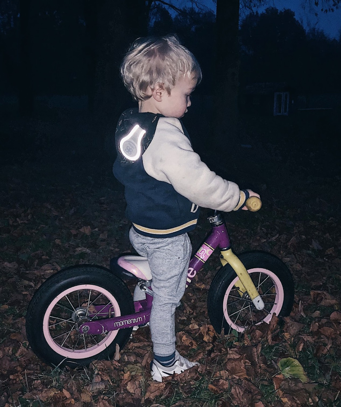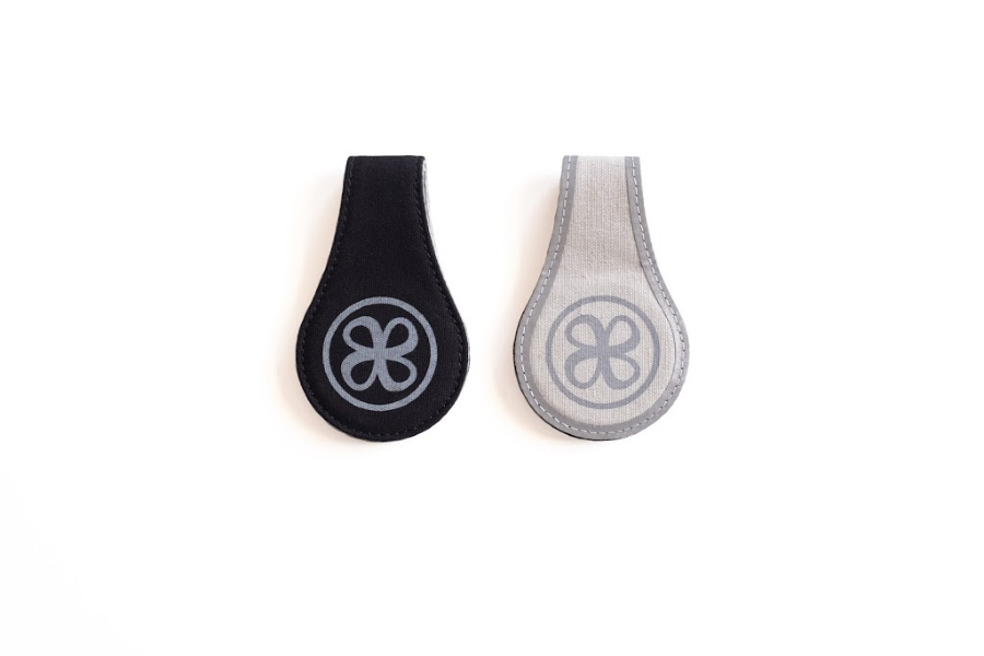 Il clip contiene 2 calamite ed è rivestito con tela nera e grigia con una striscia riflettente sul lato grigio che mantiene il passeggino visibile durante le passeggiate serali. Il clip riflettente può essere fissato a una bicicletta, uno zaino o un abbigliamento dopo il tramonto per una maggiore sicurezza. Visibilità fino a 150 m.