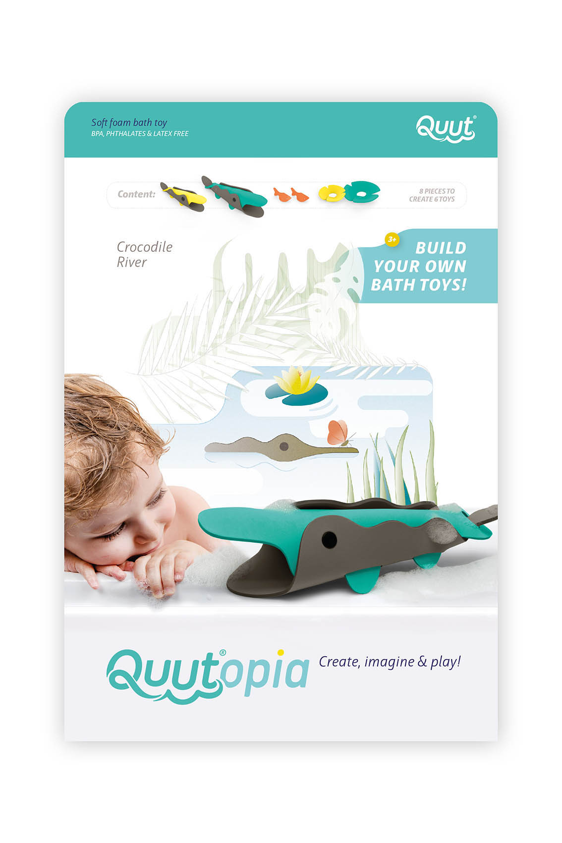 Con il Set Crocodile River di Quut, il momento del bagnetto è un divertimento unico! Quante belle storielle si possono raccontare mentre il vostro bambino fa il bagnetto, in un fiume dove regnano i coccodrilli.