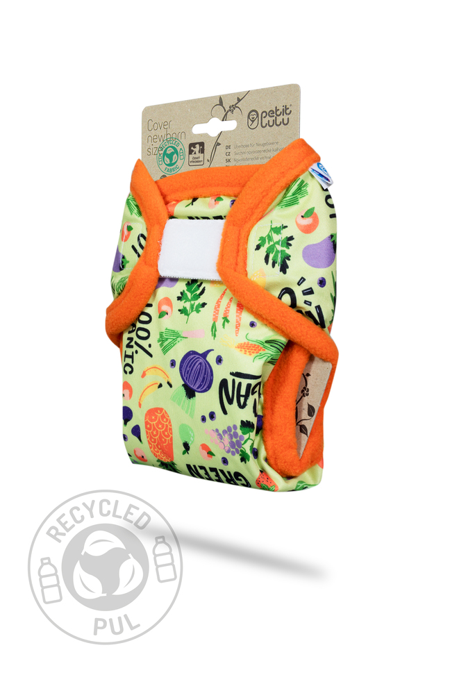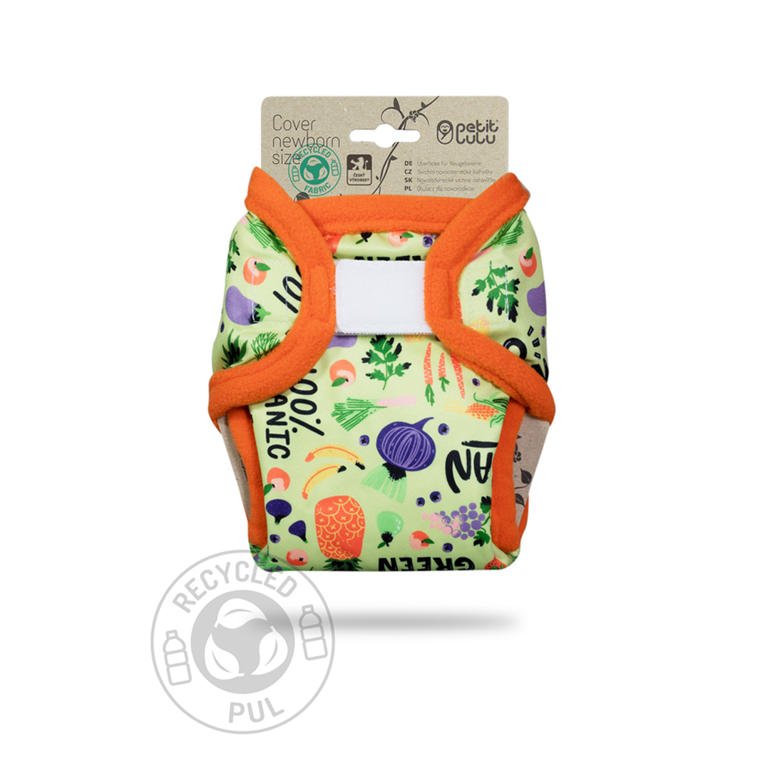 Questa cover per neonato di Petit Lulu ha bordi in morbido pile su gambe e pancia. Di conseguenza, i bambini non ottengono smagliature. La cover newborn è adatta a bambini da 2 a 6 kg e si chiude con il velcro.  Si mette sopra un fitted oppure un prefold taglia neonato di Petit Lulu o di un altro marchio.