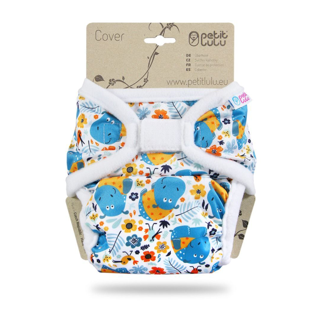 Questa cover One Size di Petit Lulu, è impermeabile, ma traspirante e ha morbidi bordi in pile sulle gambe e sulla pancia. Di conseguenza, i bambini non hanno smagliature. È regolabile in due misure ed è adatta a bambini dai 12 ai 17 kg, grazie a bottoni a pressione. La cover si chiude pure con il velcro.