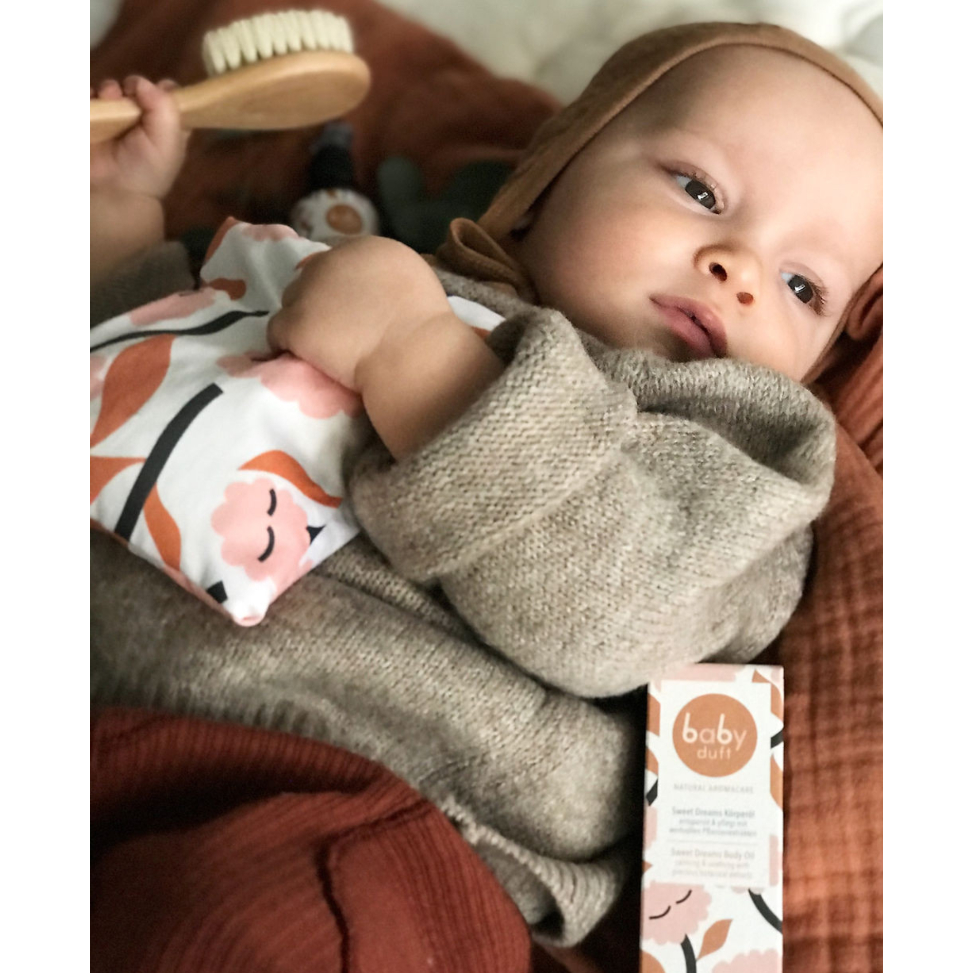 Consiglio per un relax ancora più intenso: se tuo figlio non vuole dormire e ha bisogno di un po’ più di sostegno, puoi anche usare lo spray aromatico BABYDUFT Sweet Dreams senza alcool.