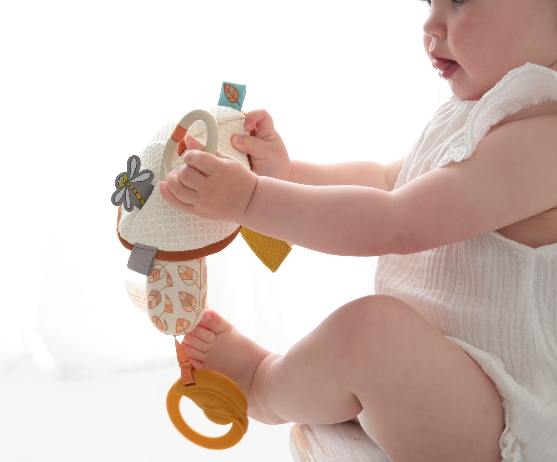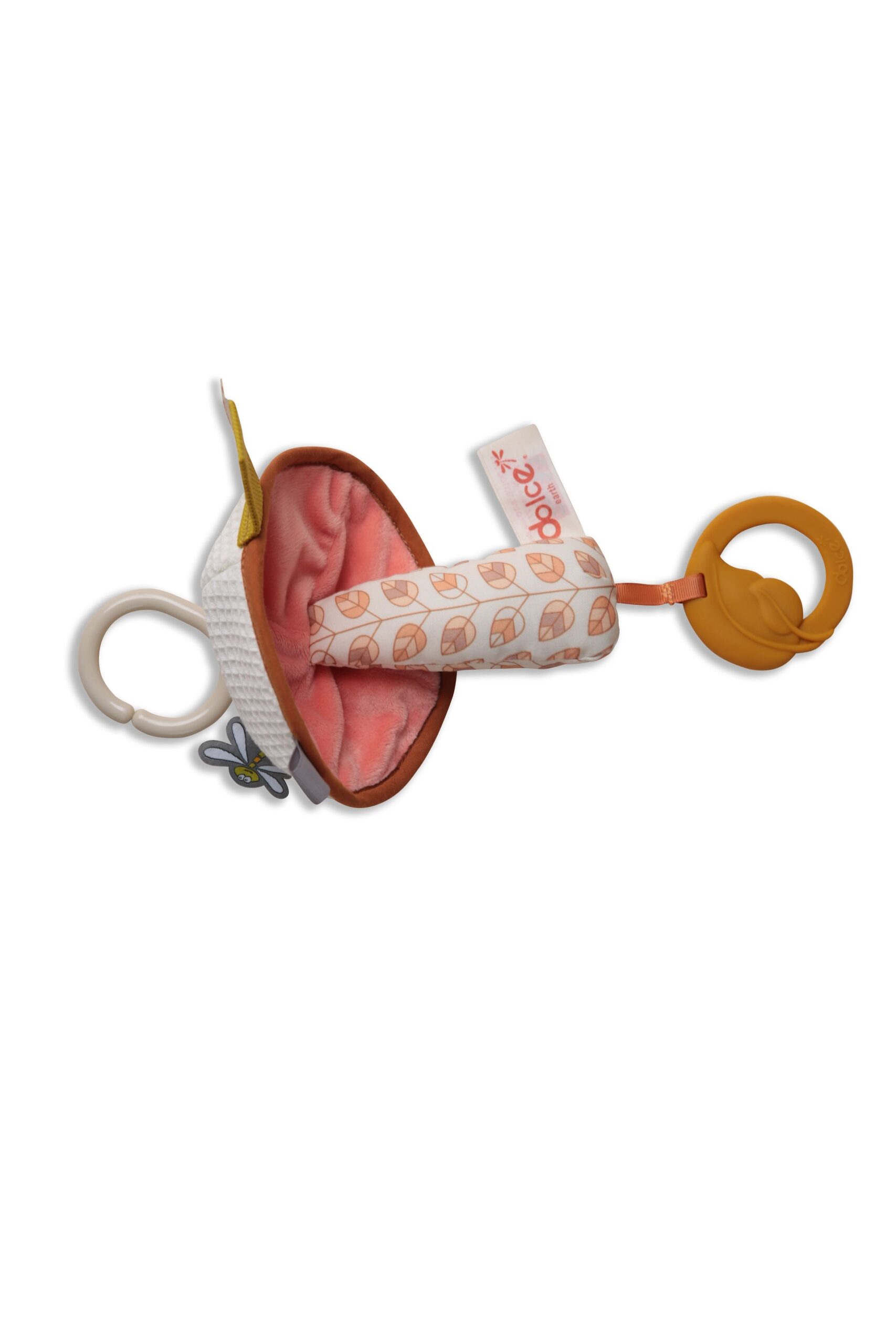 Questo bellissimo giocattolo per lettino e passeggino è un compagno perfetto per il tuo bambino quando sei a casa o in viaggio. Il giocattolo che suona manterrà il tuo bambino impegnato a giocare con i tessuti testurizzati ed è meraviglioso per calmare il tuo bambino mentre il dolce suono suona. I dettagli applique, gli anelli massaggiagengive e le linguette delle attività si aggiungono al valore di gioco di questo fantastico giocattolo.