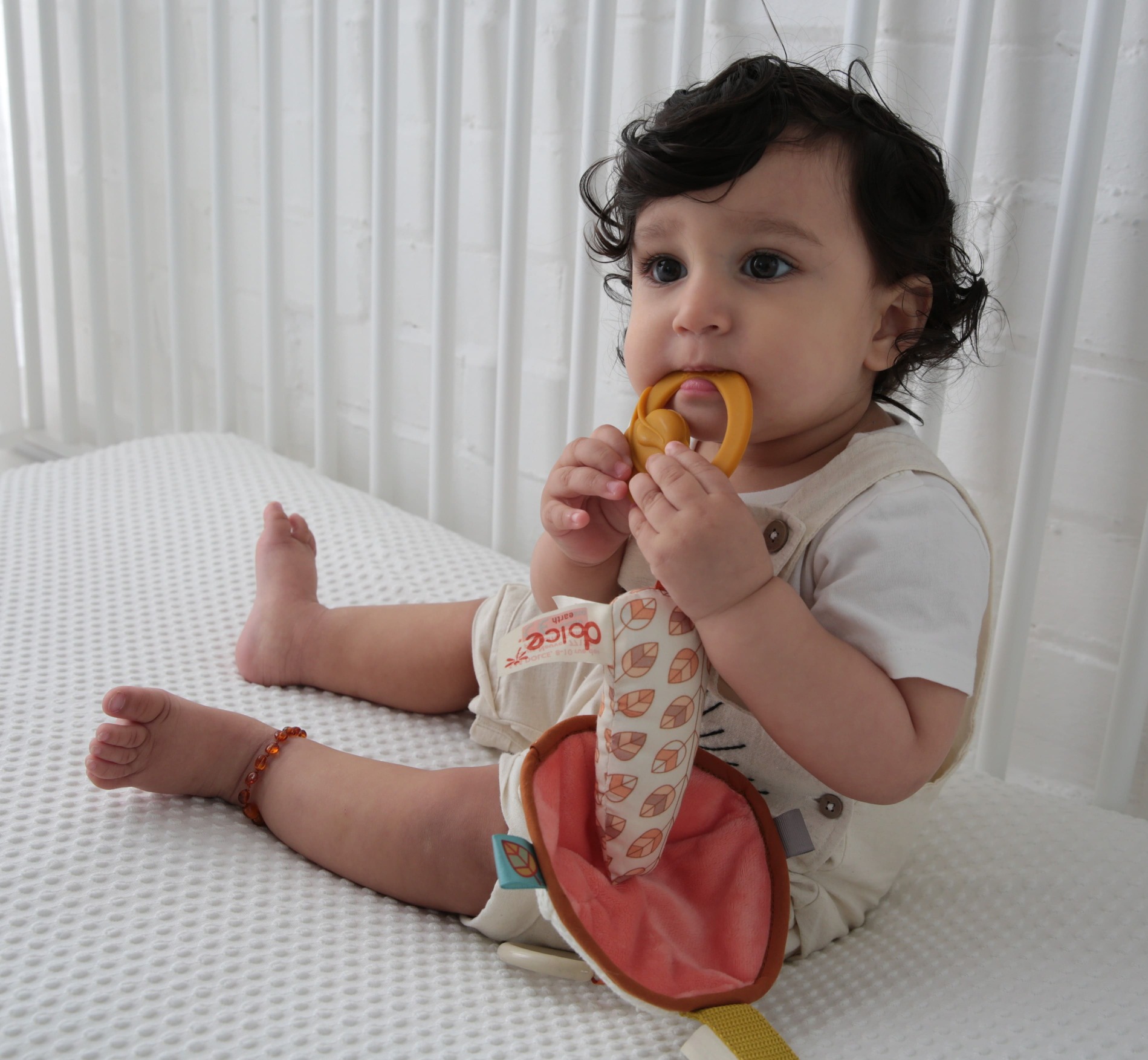 Questo bellissimo massaggiagengive è un compagno perfetto per il tuo bambino quando sei a casa o in viaggio. L’anello massaggiagengive manterrà il tuo bambino impegnato a giocare con i tessuti testurizzati.