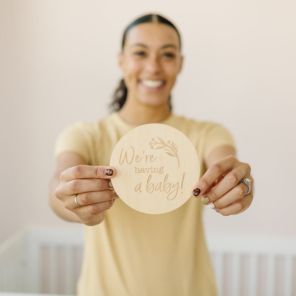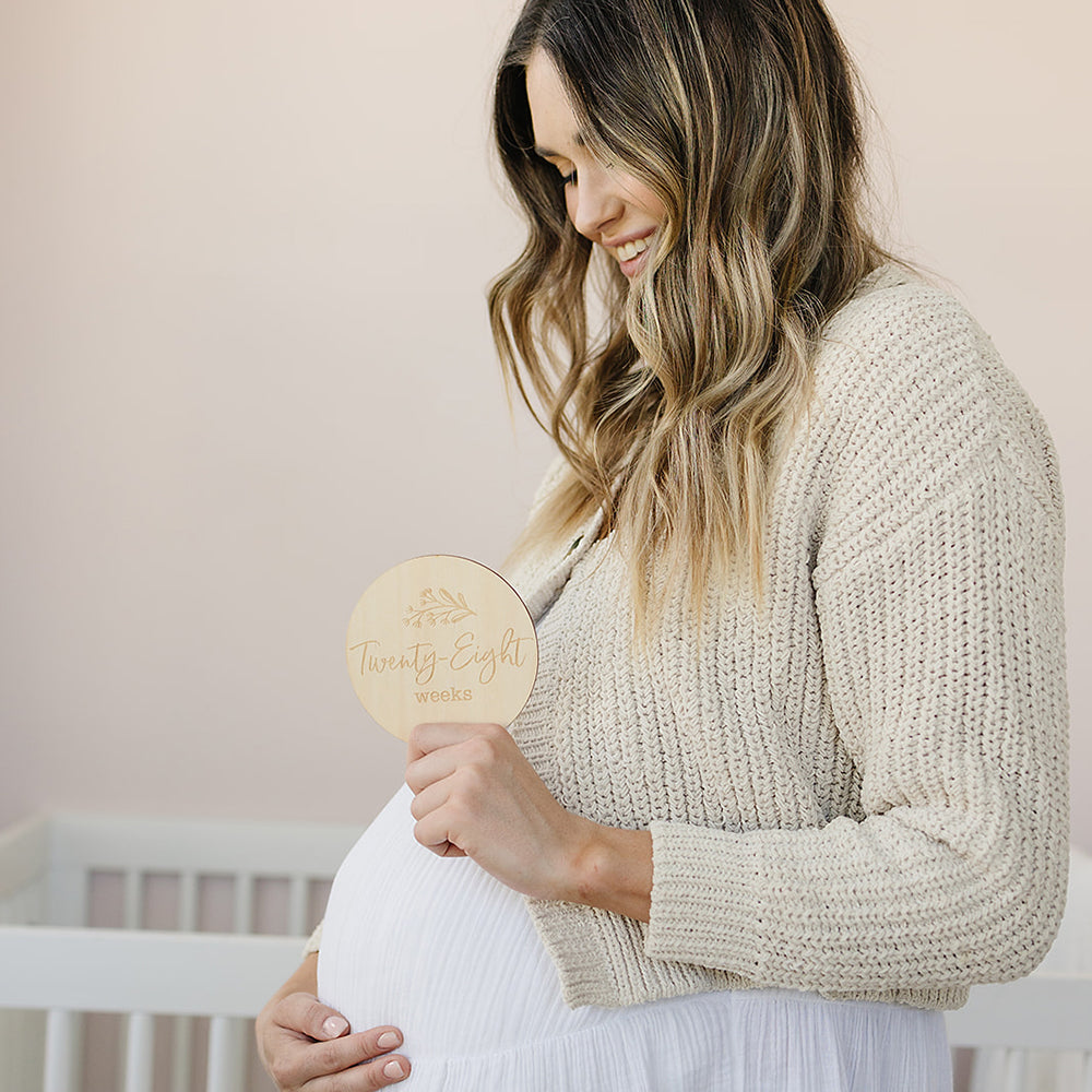 Dal momento in cui scopri di essere in attesa, fino al giorno della nascita del tuo piccolo, documenta la tua gravidanza in corso con i bellissimi dischi traguardo in legno di Bebe au Lait.