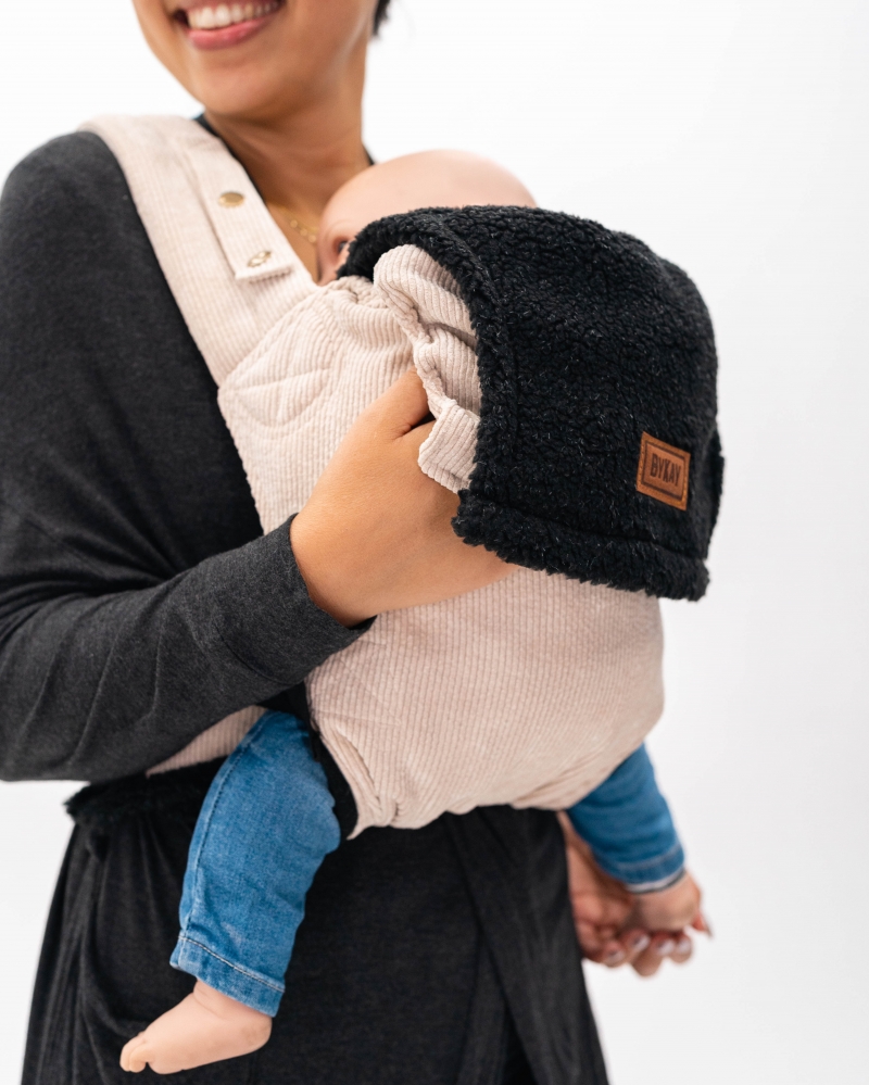 Il Teddy non solo si adatta a tutti i Click Carriers e Mei Tai’s di Bykay, ma può anche essere utilizzato nella maggior parte delle altre marche di marsupi. In questo modo puoi trasformare il tuo marsupio in un bellissimo marsupio invernale!