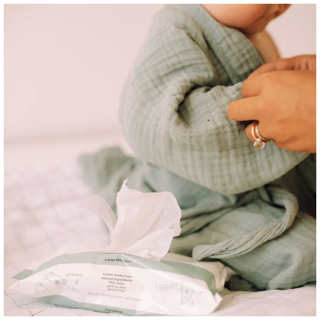 Quando hai un neonato, si consumano tantissime salviettine umidificate. È quindi importante che siano non solo delicate per il tuo bambino, ma anche con un impatto minimo sul pianeta. Senza plastica, quindi.