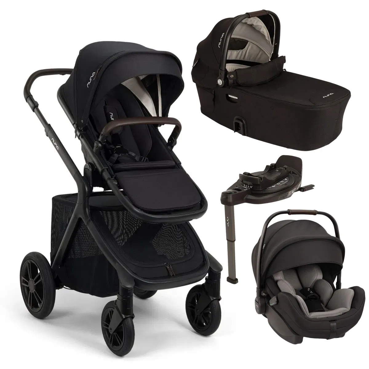 Il set include il passeggino Nuna DEMI icon, la navicella demi next e il seggiolino auto ARRA flex, creando un sistema pratico e funzionale utilizzabile fin dalla nascita.