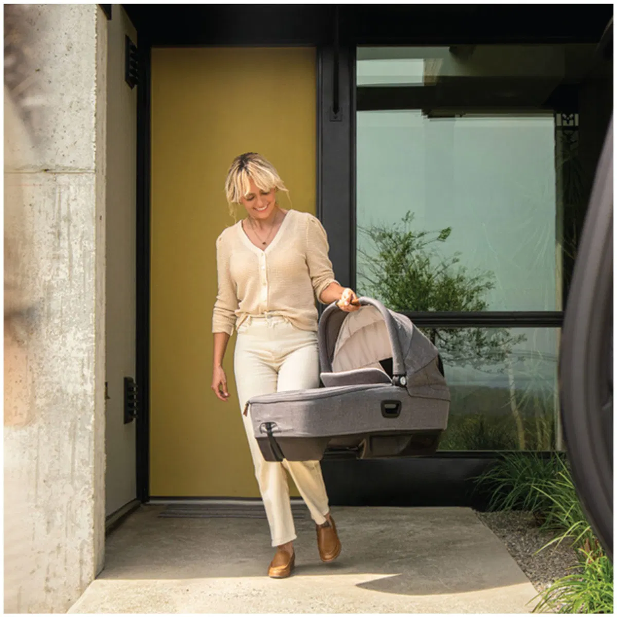 Leggera e pratica, si aggancia facilmente al passeggino Nuna o si installa in auto con la Base Next o Base Curv (vendute separatamente). Così potete passare dal passeggino all’auto senza svegliare il vostro bambino.