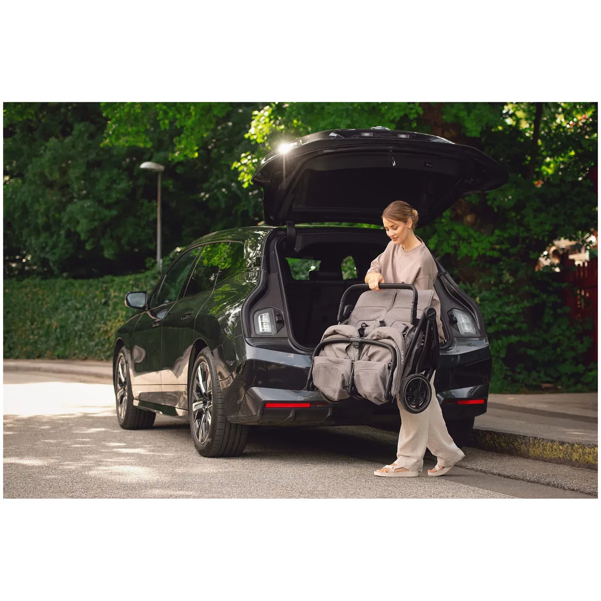 Grazie al sistema di cinture magnetiche, alle ruote anteriori bloccabili e alle sospensioni su tutte le ruote, ogni uscita diventa più sicura, fluida e piacevole per tutta la famiglia.
