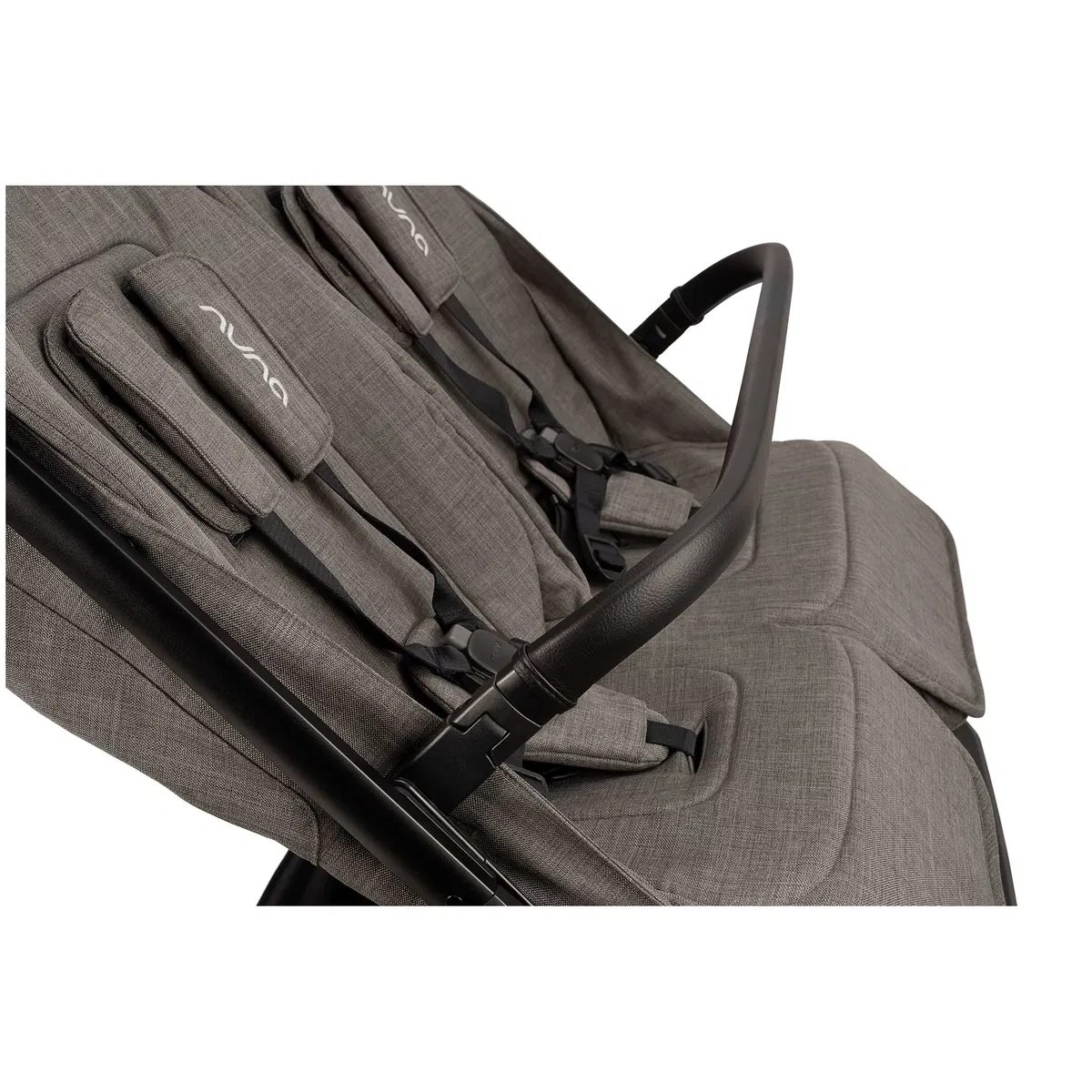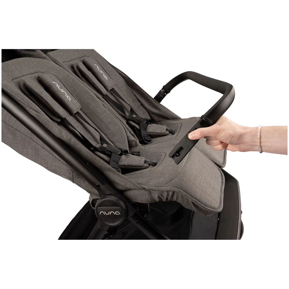 Il Nuna TRVL Dubl è utilizzabile dalla nascita fino a circa 22 kg per seduta ed è dotato di due sedute completamente indipendenti, entrambe regolabili con schienale reclinabile quasi completamente e supporto per le gambe.