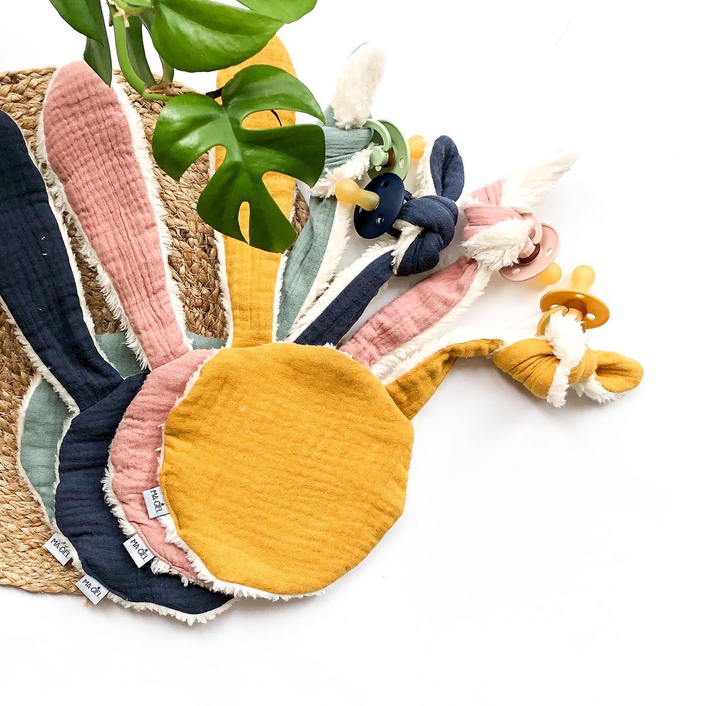 Questo morbidissimo panno ciuccio – completamente nello stile Knijn© – è perfetto per le coccole di tuo figlio. Si attacca il ciuccio all’orecchio più lungo. In questo modo, il ciuccio rimarra sempre vicino al bambino, senza che lo si perda.