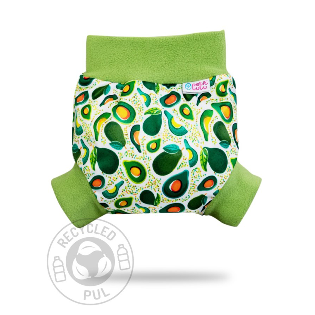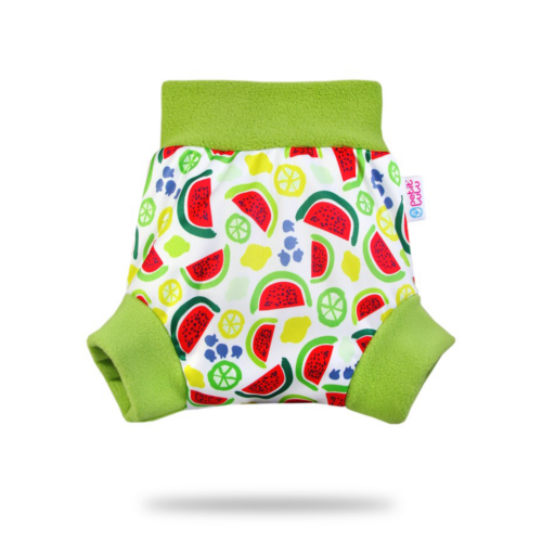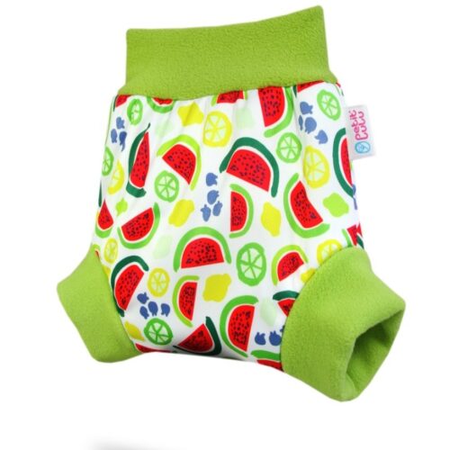 Questa comoda cover pull-up Petit Lulu ha morbidi e ampi bordi in pile sulle gambe e sulla pancia. Il fondo non ha chiusura e si indossa come mutande. La cover pull-up è quindi molto adatta per chi dorme sullo stomaco, che con altri cover  si bagnerebbe troppo velocemente. Questa cover può essere utilizzata anche durante il giorno. Grazie al doppio strato di PUL, questo pantaloncino pull-on è molto resistente alle perdite. La cover è disponibile in quattro taglie diverse. Le misure sono approssimative e dipendono dalla corporatura del tuo bambino. È meglio avere una cover un po’ troppo grande che troppo piccola. Qui sopra puoi scegliere la misura che vuoi ordinare.