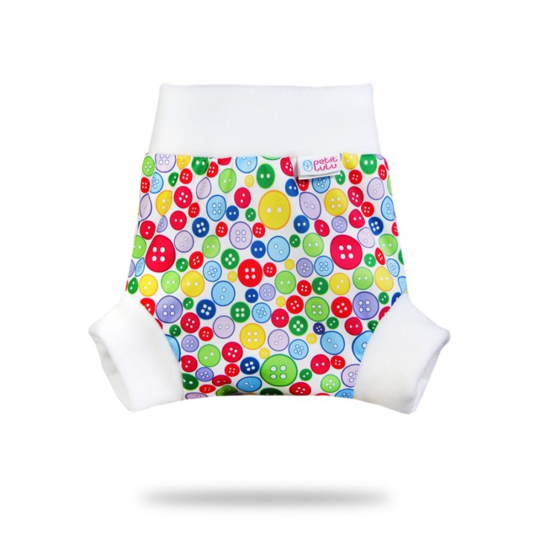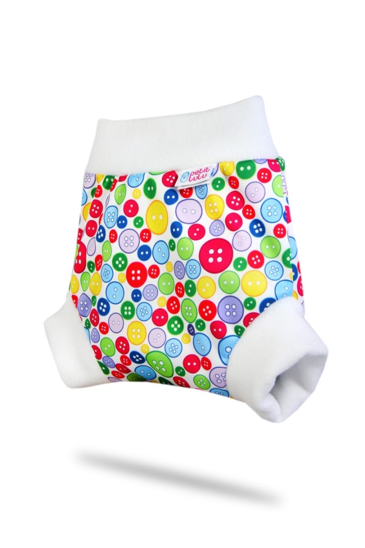 Questa comoda cover pull-up Petit Lulu ha morbidi e ampi bordi in pile sulle gambe e sulla pancia. Il fondo non ha chiusura e si indossa come mutande. La cover pull-up è quindi molto adatta per chi dorme sullo stomaco, che con altri cover  si bagnerebbe troppo velocemente. Questa cover può essere utilizzata anche durante il giorno. Grazie al doppio strato di PUL, questo pantaloncino pull-on è molto resistente alle perdite. La cover è disponibile in quattro taglie diverse. Le misure sono approssimative e dipendono dalla corporatura del tuo bambino. È meglio avere una cover un po’ troppo grande che troppo piccola. Qui sopra puoi scegliere la misura che vuoi ordinare.
