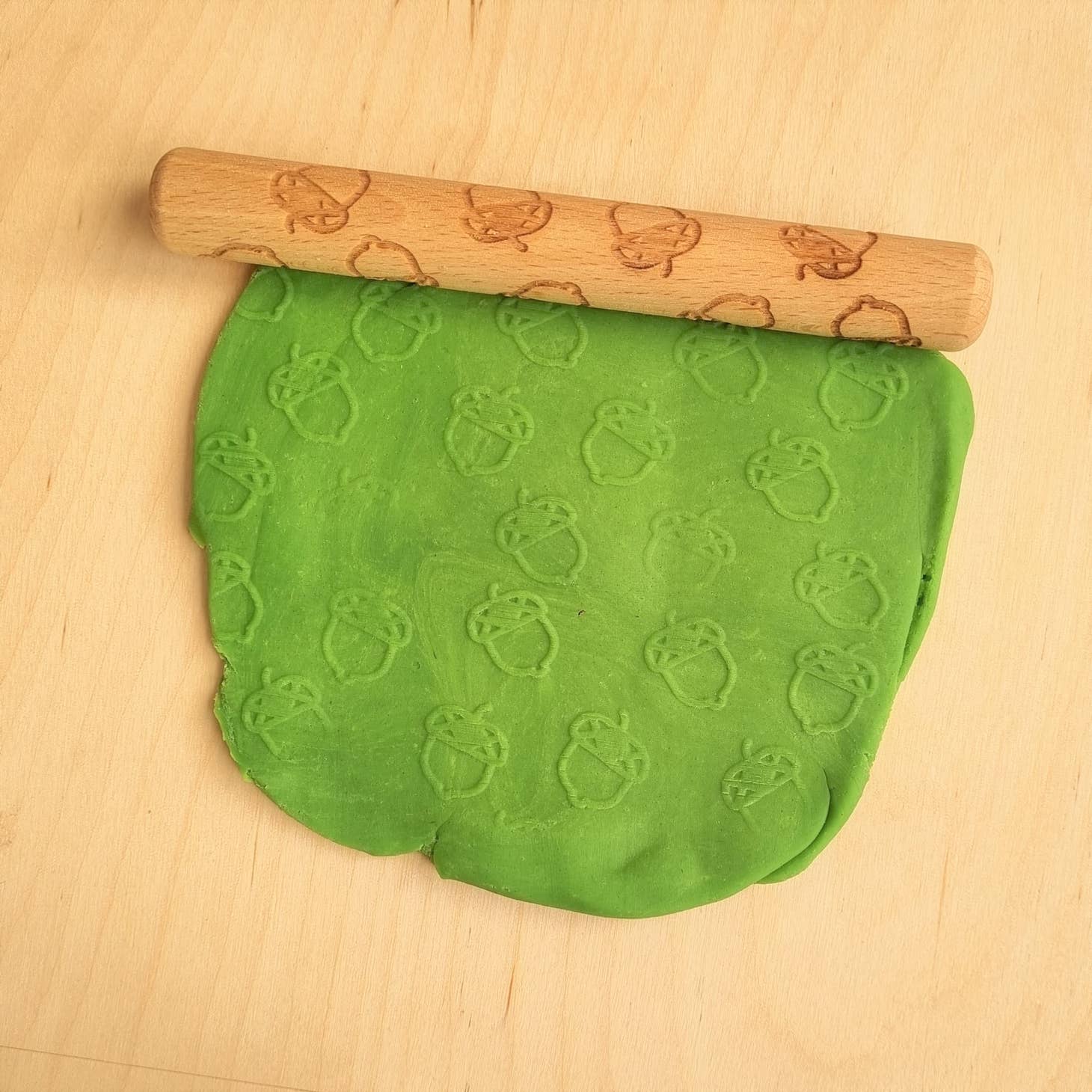Con questo rullo di legno puoi stampare tutte le ghiande nella plastilina o nella pasta di sale. Si adatta perfettamente al tema autunnale.