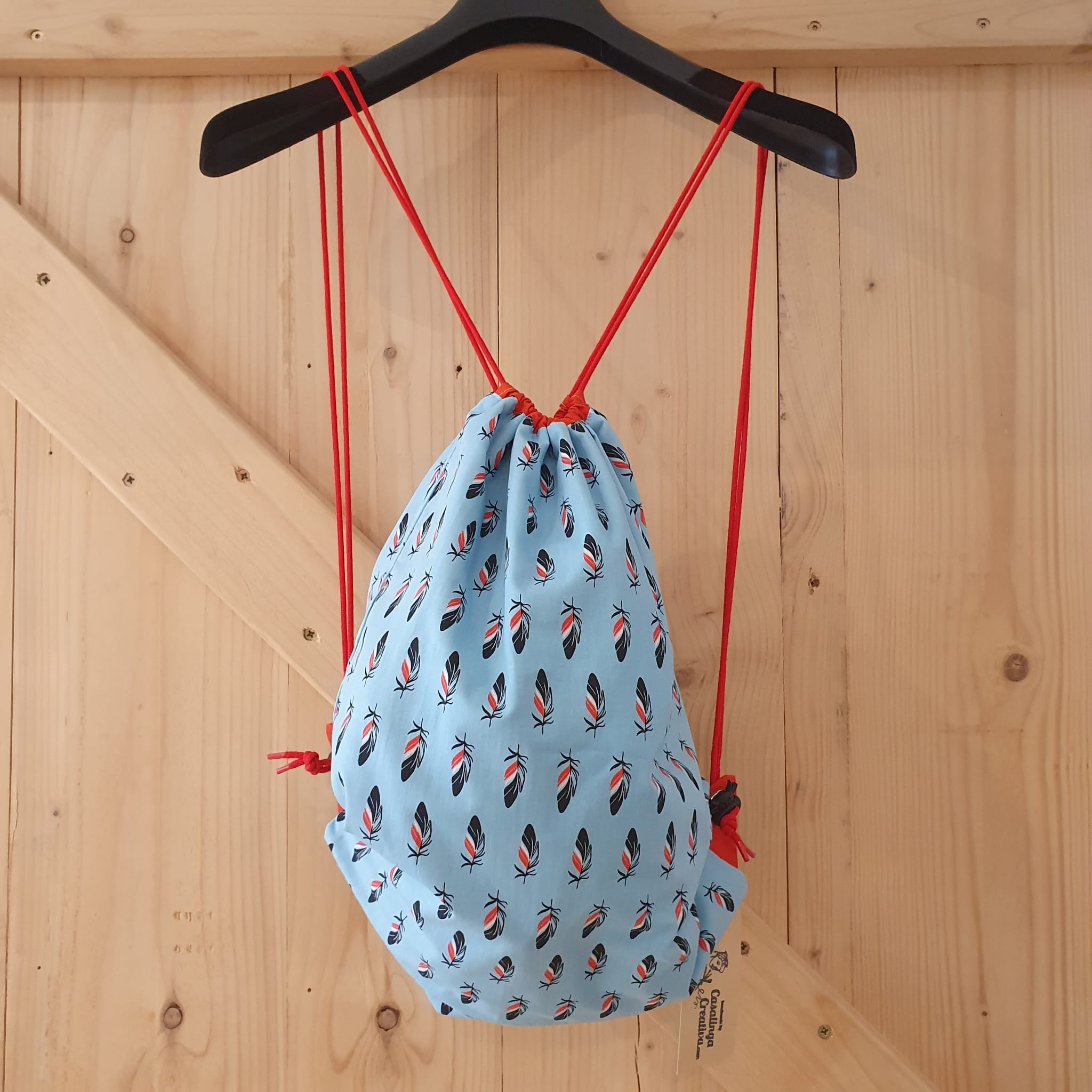 Questo sacco da ginnastica con cordoncini è stato fatto a mano da Casalinga Creativa.