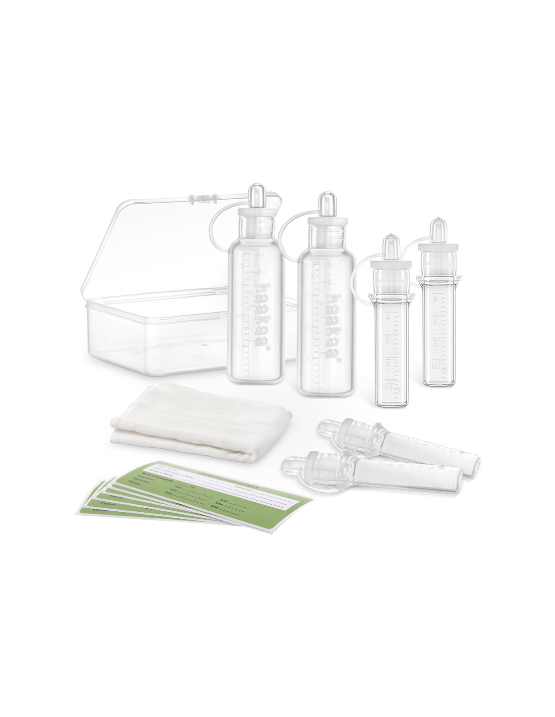 Sterilizzare ogni pipetta per il colostro prima dell’uso con qualsiasi sistema di sterilizzazione a vapore o facendo bollire in acqua per 2-3 minuti. Non utilizzare agenti a base di candeggina per pulire questo prodotto. (Si consiglia invece di utilizzare il sapone per piatti Haakaa.) Usa tutto il colostro nel contenitore per una poppata e getta quello che avanza (oppure tienila da parte in frigo per mettere nel bagnetto).