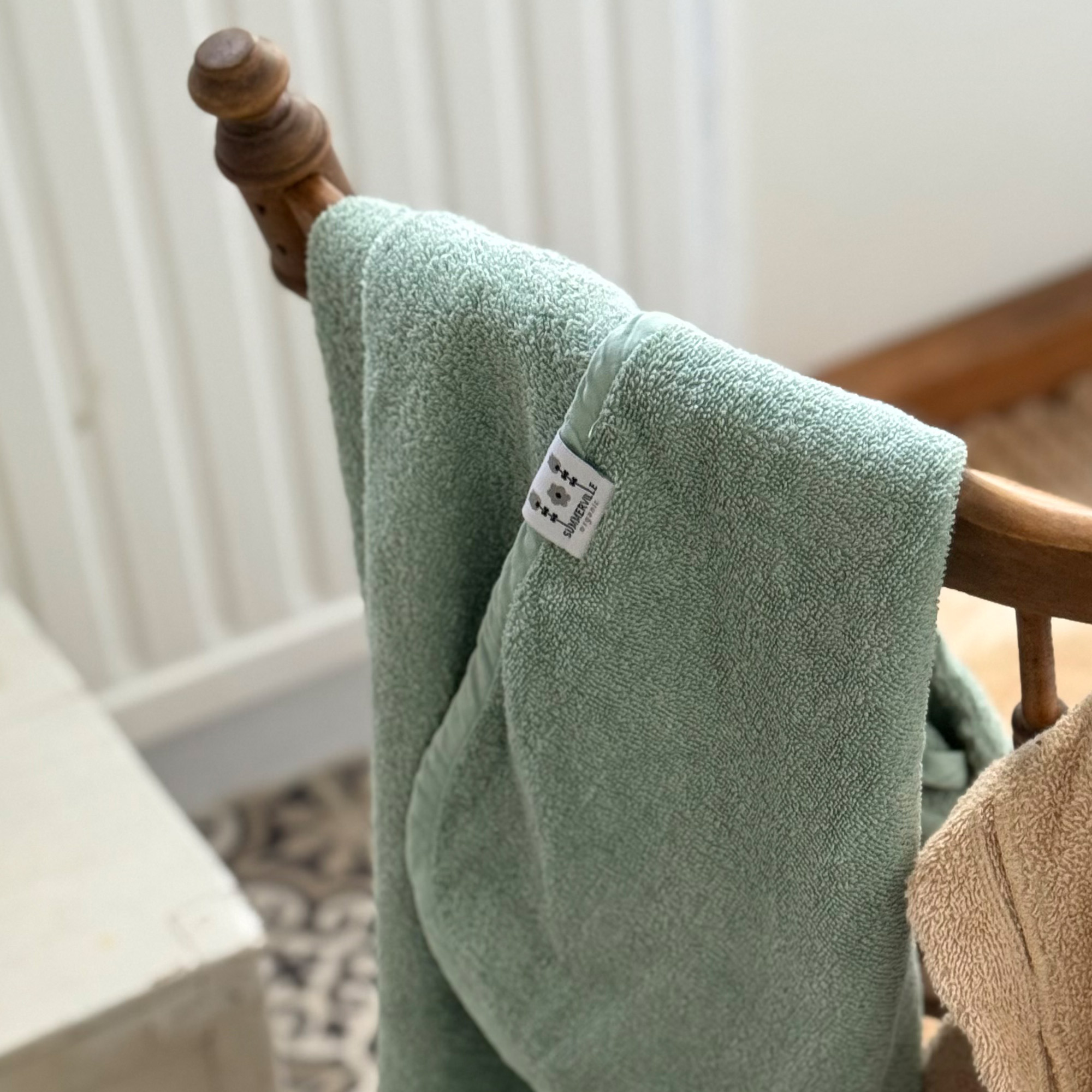 Summerville Organic – Asciugamano con cappuccio coniglietto cameo green – GOTS