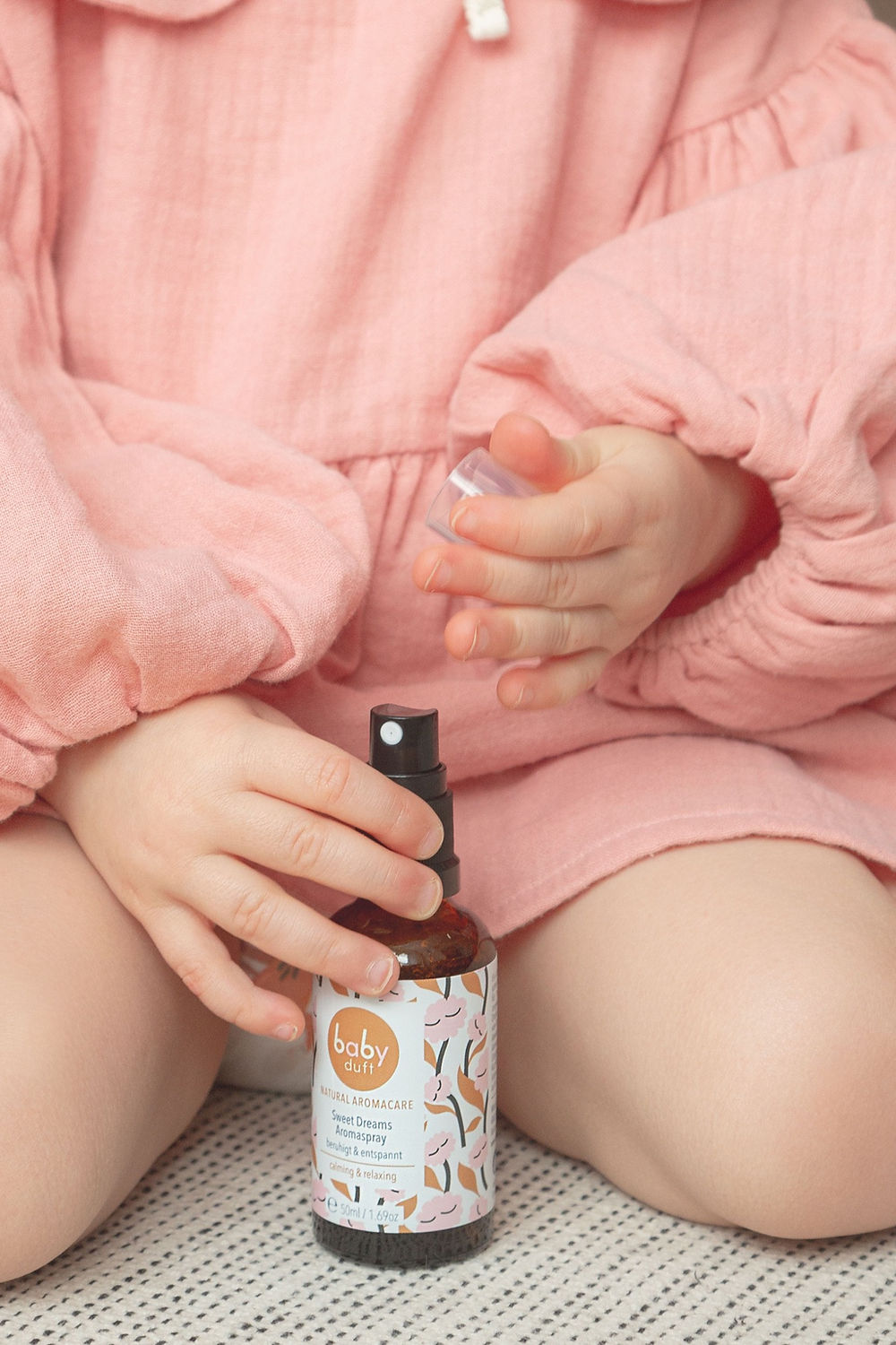 LA novità! Grazie alla formulazione delicata, lo spray aromatico Babyduft (senza alcool) può essere applicato direttamente sulla pelle e dona una sensazione di sicurezza e relax.