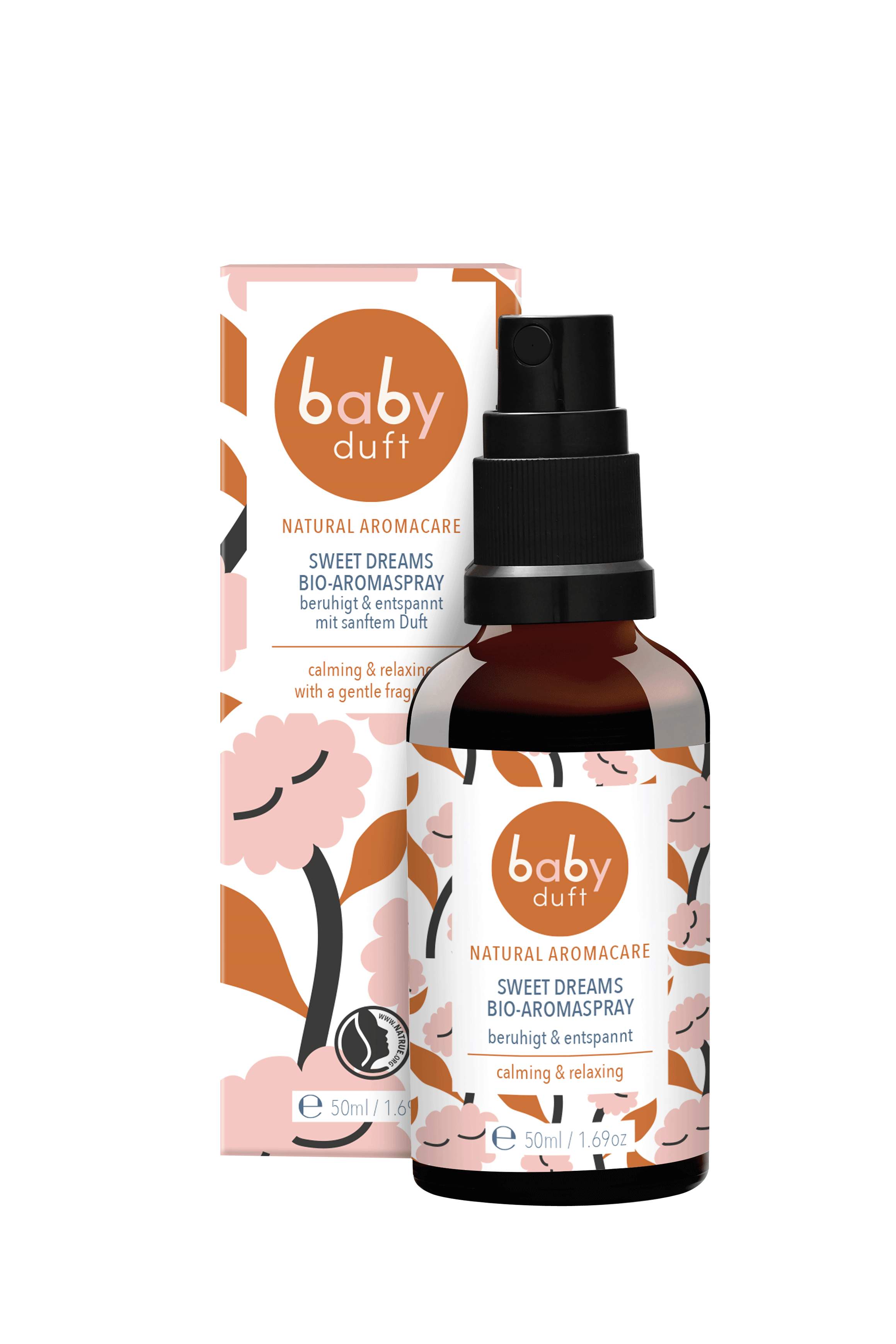 Il famoso spray aromatico BABYDUFT Sweet Dreams porta l’etichetta NATRUE, che è uno standard affidabile, verificabile e internazionale per i veri cosmetici naturali e biologici. I prodotti certificati da NATRUE sono realizzati con sostanze naturali al 100%, questo è ciò che gli utenti possono essere certi di acquistare cosmetici naturali genuini.