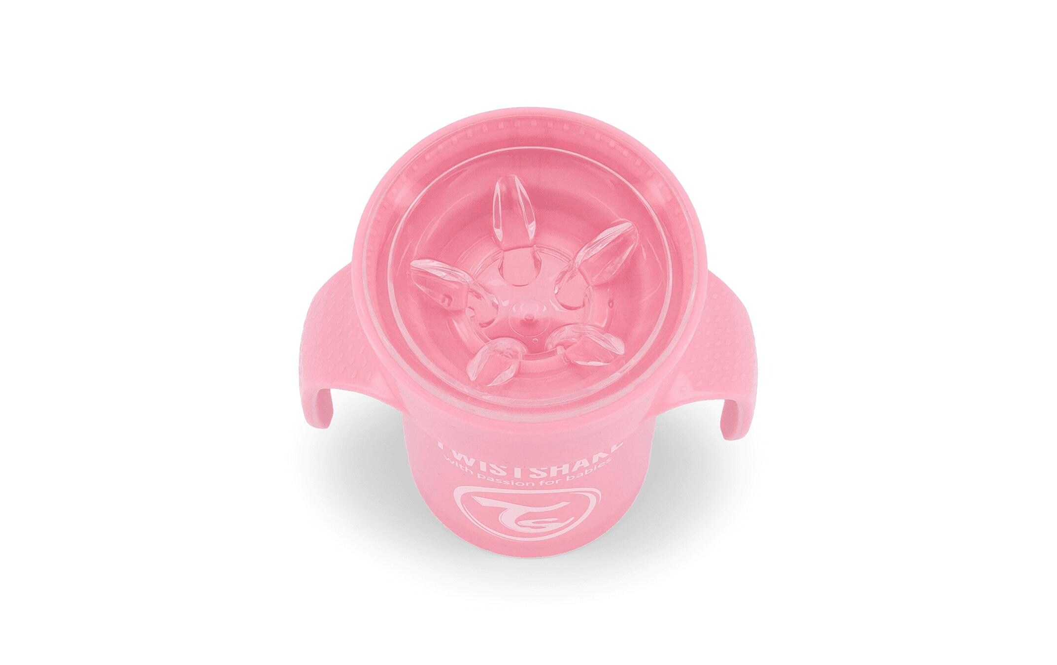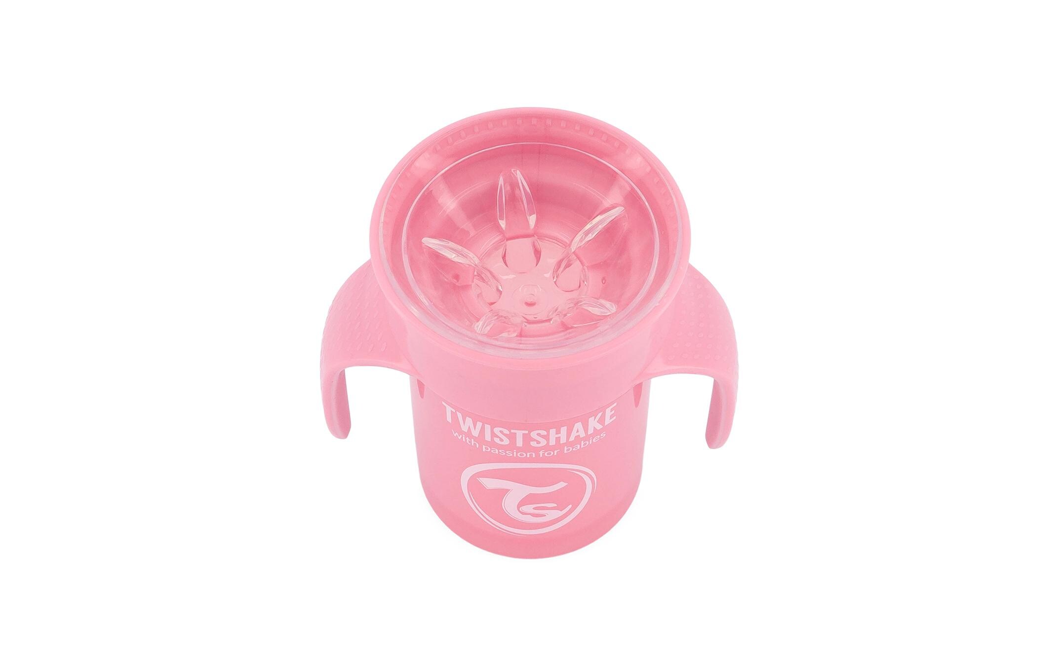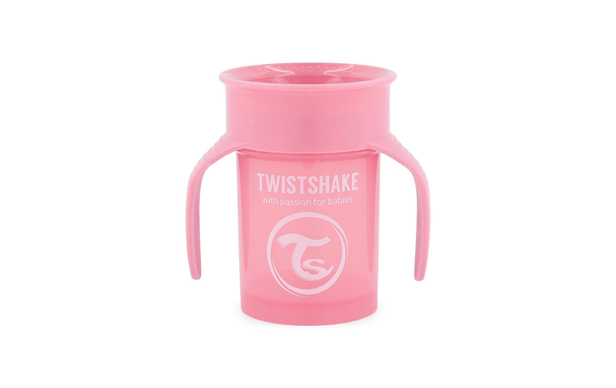 Il Twistshake 360 Cup è un bicchiere d’apprendimento per bambini piccoli (6+mesi), dotato di un bordo da cui il bambino può bere da qualsiasi lato tutto intorno al bicchiere, proprio come da un normale bicchiere, ma senza rovesciare. Da qui il nome 360 Cup.